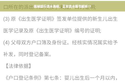 摘要:本文将揭秘银行流水的真相与细节,带你了解银行流水的含义及其重要性。正常的银行流水应具备多样性、规律性和真实性。通过深入了解银行流水,我们能更好地管理个人财务,防范金融风险。本文旨在帮助读者认清银行流水的真实面貌,提升个人财务管理能力。