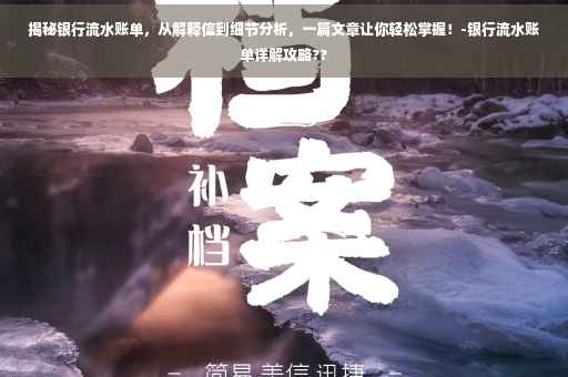 随着金融行业的快速发展,越来越多的人开始关注个人财务管理的重要性,在这个过程中,银行流水账单作为个人财务状况的重要体现,其重要性日益凸显,本文将详细介绍银行流水账单的基本概念、内容以及解读方法,帮助大家更好地了解自己的财务状况。