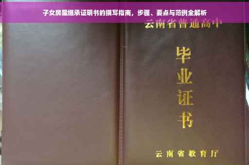 摘要:,,本文是关于子女继承房屋证明书的写作指南。继承房屋证明书是证明子女继承房产的重要文件,内容需详实、规范。本文提供了相关格式和注意事项,包括证明书的标题、继承人信息、被继承人信息、房产信息、继承事实描述、证明机关信息等。撰写时需注意语言简洁明了,重点明确,以确保证明书的法律效力和真实性。遵循本文指导,可帮助撰写符合要求的子女继承房屋证明书。