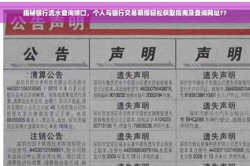 摘要:本文将揭秘银行流水查询接口,教你如何轻松获取个人与银行交易明细。通过访问银行官方网站或相关查询平台,你可以方便地查询个人银行流水。本文将为你提供详细的步骤和注意事项,让你轻松掌握银行流水查询方法,随时掌握个人财务动态。