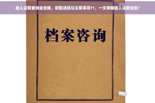 本文详细介绍了收入证明的查询途径及注意事项,帮助您轻松获取自己的收入证明,在实际操作中,请务必注意准确性、合法性、及时性、保密性和完整性等方面的问题,希望本文能对您有所帮助,如果您还有其他问题,欢迎随时咨询。