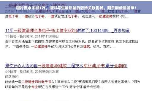 在这个数字化时代,当我们打开手机银行应用,看到账户余额的那一刹那,复杂的情绪往往涌上心头,欣慰、焦虑、满足或失落,都是那一数字给我们带来的真实感受,当我们的银行流水余额达到一万时,这究竟意味着什么呢?它又是如何影响我们的日常生活呢?让我们一起探讨。