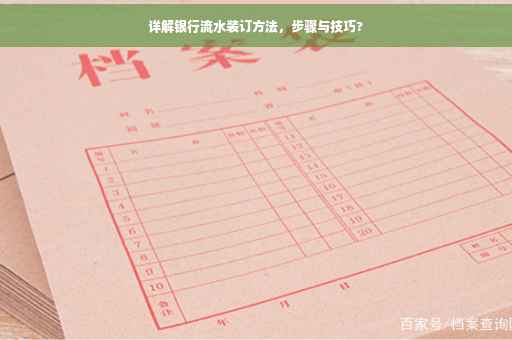 摘要:本文将详细介绍装订银行流水的方法。包括常见的装订方式,如使用专业的装订机进行装订,以及手动装订等。还将介绍如何选择合适的装订工具,确保流水文件的整齐和安全。本文旨在帮助读者了解并掌握装订银行流水的方法,以便更好地管理和保存银行流水记录。