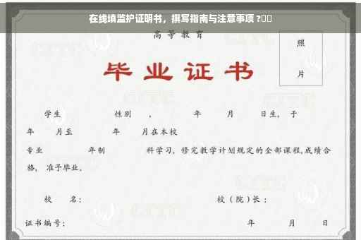 摘要:在线填写监护证明书时,需正确撰写并注意事项。确保证明书的真实性和准确性,填写内容应包括被监护人信息、监护人信息、监护关系等。注意使用简洁明了的语言,避免使用模糊或不确定的表达。在填写过程中,务必核对各项信息是否准确无误,确保监护证明书的法律效力。正确填写监护证明书对于保障被监护人权益至关重要。