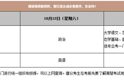 摘要:关于租房的新规则引发了广泛关注,其中银行流水成为必备条件备受争议。本文探讨了这一新规定背后的合法性,揭示了租房市场的新变化。通过深入了解,我们将为您解析这一规则是否合法,并探讨其可能带来的影响。