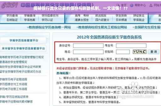 银行流水记录的保存时间因银行、数据类型等多种因素而异,个人和企业应了解所在银行的流水记录保存时间规定,并采取相应措施安全保管流水记录,关注相关法律法规和银行通知,确保自身权益不受侵害,希望本文的解读能帮助您更好地理解银行流水记录的保存时间问题。