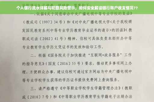 摘要:,,本文介绍了如何详细解读个人银行流水,正确了解银行账户收支情况,并强调这是违法犯罪问题。提醒公众要合法合规地查询和使用银行流水,避免涉及非法活动。建议通过正规途径获取银行流水信息,并谨慎处理个人隐私及财务信息。