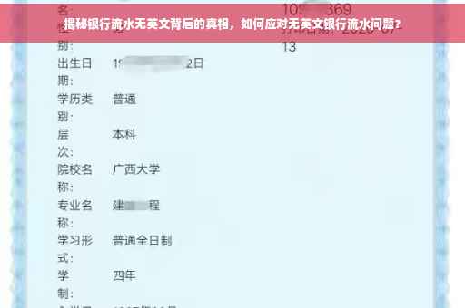 关于银行流水没有英文的问题,这可能是由于某些银行在提供流水账单时只提供中文版本。如果遇到这种情况,客户无需过于担心。可以通过多种方法解决,如前往银行柜台咨询并要求提供英文版本的流水账单,或使用在线翻译工具自行翻译。确保获取到所需的银行流水信息,并妥善处理任何相关问题。