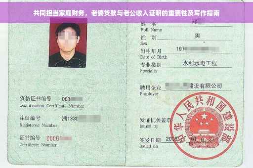 摘要:,,本文主要探讨老婆贷款时,老公提供收入证明的重要性。在共同承担家庭财务责任的过程中,老婆贷款与老公的收入证明共同体现了夫妻双方的担当。文章将介绍如何撰写收入证明,强调双方应坦诚沟通,确保贷款与家庭财务规划合理。通过共同努力,确保家庭财务稳健发展。