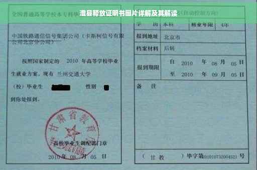摘要:本文介绍了澧县释放证明书图片及其解读。通过图片展示,让读者了解释放证明书的外观和格式。文章还提供了对释放证明书内容的解读,帮助人们理解其中的各项信息,包括被释放人的基本信息、犯罪情况、释放时间等。这篇文章旨在帮助人们正确理解和使用澧县释放证明书,以便更好地维护自身权益。