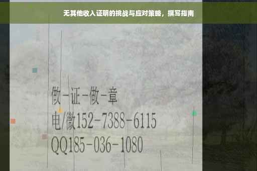 摘要:本文将介绍如何撰写无其他收入的证明,并探讨现实挑战与应对策略。文章指出,在撰写无其他收入证明时,需要清晰、准确地表述个人财务状况,同时提供必要的证明文件。面对现实挑战,个人应制定合理预算,积极寻求增加收入的途径,并寻求专业财务建议。本文旨在帮助读者有效处理无其他收入的情况,实现财务稳定。