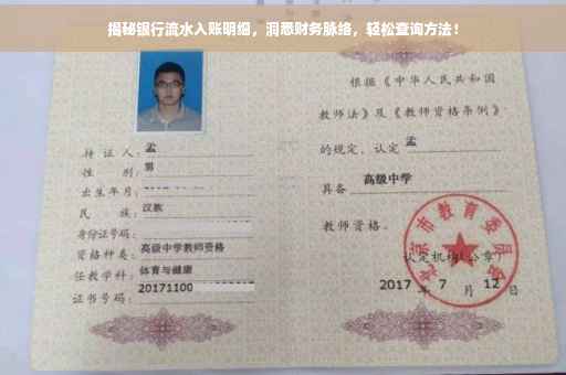银行流水入账明细是了解财务状况的重要途径,通过查看和分析银行流水明细,你可以更好地了解自己的收支状况、消费习惯以及资金流动情况,从而制定合理的财务计划和投资策略,希望本文能帮助你更好地利用银行流水入账明细,洞悉你的财务脉络。