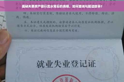 随着社会的不断发展,房产已成为家庭的重要资产之一,而在购买房产的过程中,银行流水作为一个重要的贷款审批依据,对于夫妻共同购房更是具有举足轻重的地位,本文将深入探讨夫妻房产银行流水背后的故事与真相,带您了解其中的细节与要点。