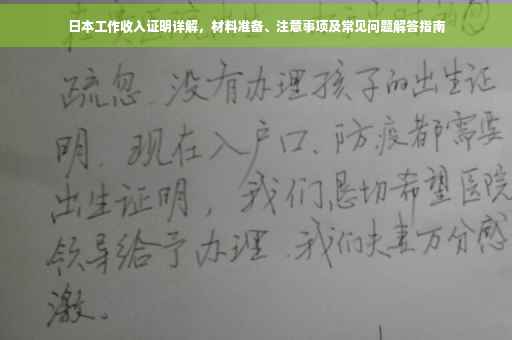 日本工作收入证明是办理各类手续的重要文件,准备过程中,请确保提供准确、完整的材料,了解格式要求,注意保密性,遇到问题时,及时与公司相关部门沟通,希望本文能帮助大家顺利办理日本工作收入证明,祝愿大家在日本的工作和生活一切顺利。
