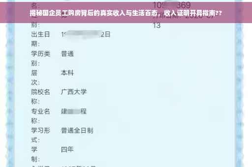 随着城市化进程的加快,购房已成为众多国企员工生活中的重要议题,在购房过程中,银行所需的收入证明是评估贷款申请和信用状况的关键依据,本文将深入探讨国企员工购房收入证明的相关问题,真实反映国企员工的收入状况与生活百态。