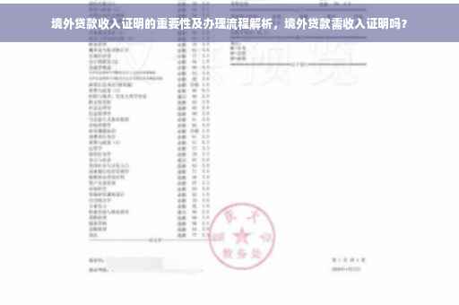 随着全球化的发展,越来越多的人选择境外贷款来满足自身需求,无论是购房、购车还是进行其他大额消费,境外贷款因其相对灵活的条件和较低的利率而备受青睐,在申请境外贷款时,收入证明是不可或缺的重要材料之一,本文将详细介绍境外贷款收入证明的重要性及办理流程,帮助读者更好地了解并顺利申请境外贷款。