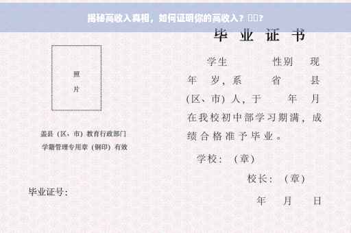 揭秘高收入背后的真相,想要证明自己的高收入并非易事。除了提供详细的收入证明和税务记录外,还需要展示个人专业技能、行业经验和业绩成果等。高收入往往伴随着高要求和高付出,只有充分展示个人的价值才能让人信服。要证明自己的高收入,需要全方位地展现自己的实力和优势。
