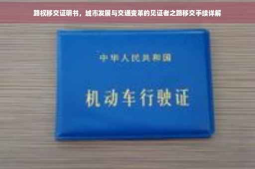 随着城市化进程的加速,城市交通问题日益凸显,作为城市发展的重要组成部分,路权移交证明书在这一过程中扮演着举足轻重的角色,本文将围绕路权移交证明书的含义、作用、流程及其意义展开,带您深入了解这一见证城市发展与交通变革的文书。