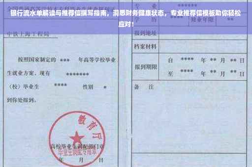 摘要:,,本文介绍了如何解读银行流水单以及撰写银行流水单推荐信。通过解读银行流水单,可以了解个人的财务健康状态,包括收入、支出、转账等方面的情况。推荐信的撰写也很重要,需要清晰地表达被推荐人的财务状况和信用等级,以便银行或其他金融机构做出决策。本文旨在帮助读者更好地管理自己的财务,提高信用评级,实现财务目标。