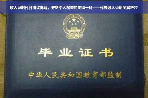 摘要:本文将详细介绍收入证明代开协议的内容及其重要性。作为保障个人权益的关键一环,收入证明代开协议能够帮助个人在需要证明自身收入状况时,通过代办的方式获取合法有效的收入证明。本文旨在让读者了解并重视收入证明代开协议的必要性,以便更好地维护个人权益。