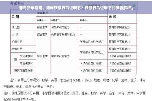 随着人们对自然与生态的热爱日益加深,越来越多的人选择养鸟作为自己的宠物,养鸟不仅能为生活增添乐趣,还能让我们更近距离地观察大自然,养鸟并非一件简单的事,其中第一步就是需要获得养鸟证明书,怎样才能顺利获得养鸟证明书呢?本文将为您详细解答。