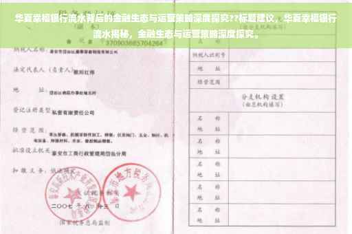 摘要:华夏幸福银行流水被揭示,其背后的金融生态和运营策略受到深度探究。通过了解华夏银行的运营方式,我们可以一窥其金融生态的运作机制,包括其客户群、资金来源、风险控制等方面。其运营策略也值得关注,如服务质量提升、数字化转型等举措,为华夏银行的未来发展提供重要启示。