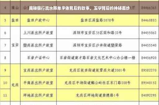 随着金融行业的快速发展,银行流水账单已经成为我们日常生活中不可或缺的一部分,你是否曾经注意过银行流水账单上的字体呢?我们将一起探讨银行流水账单上的字体背后的故事,尤其是其中的“玉”字背后所蕴含的意义,让我们一起走进这个神秘的世界,揭开银行流水账单字体背后的秘密。