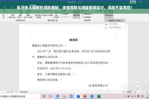 在当今社会,收入证明在各个领域扮演着举足轻重的角色,无论是贷款申请、工作应聘还是其他场合,一份漂亮的收入证明往往能为我们带来便利,乱开收入证明的行为却隐藏着巨大的风险,不仅可能涉及法律纠纷,更可能引发道德困境,本文将深入探讨乱开收入证明的风险,帮助公众认清其背后的危害。
