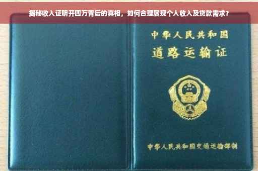 摘要:本文将揭示收入证明开四万背后的真相,探讨如何合理展现个人收入。通过深入分析,我们发现收入证明在贷款过程中扮演着重要角色。本文将教你如何在收入证明中真实反映个人收入,同时探讨收入证明开4万所能贷款的金额范围,帮助你更好地了解个人财务状况。