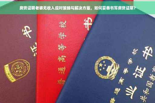 摘要:面对房贷证明中老婆无收入的情况,需妥善应对。解决方案包括:明确老婆在贷款申请中的地位,如非主贷人,则重点展示其无收入情况而非影响贷款资格。在写房贷证明时,可注明老婆为家庭主妇或全职照顾家庭等非收入状态,并提供其他家庭成员的收入证明以补充。可考虑增加共同借款人或担保人,提高贷款申请成功率。应充分了解银行政策,合理阐述情况并准备充分材料。