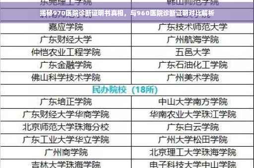 摘要:本文将揭示关于970医院诊断证明书背后的真相,同时对比960医院的诊断证明。通过深入了解两所医院的诊断流程、证明文件的真实性和准确性等方面,揭示其中的真相,帮助公众了解事实,避免受到不实信息的误导。
