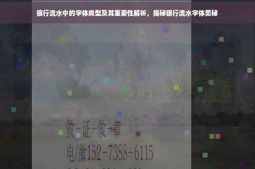 摘要:,,本文探讨了银行流水中的字体类型及其重要性。文章首先介绍了银行流水的概念和作用,随后详细解析了银行流水账单中使用的字体类型及其特点。文章强调,正确识别和理解银行流水中的字体类型对于个人和企业财务管理至关重要,有助于确保金融交易的准确性和安全性。文章也提醒读者关注字体变化可能带来的风险,并提倡采取相应措施防范潜在风险。
