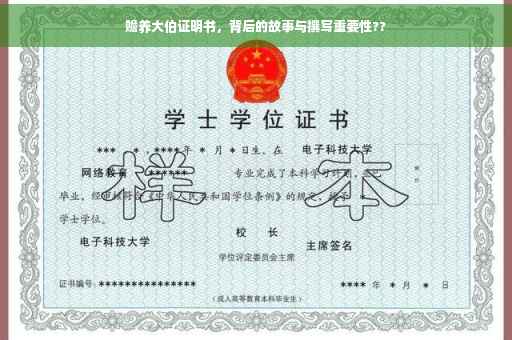 摘要:本文将探讨赡养大伯证明书的重要性及其背后的故事,并介绍如何撰写赡养大伯证明书。这份证明书不仅是一份法律文件,更是家庭责任和亲情的体现。本文将通过讲述大伯的晚年生活和家庭成员的赡养责任,强调证明书的重要性,并分享撰写证明书的要点和注意事项。