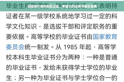 摘要:本文将介绍如何撰写考眼力的证明书,主要围绕自媒体作者的视觉之旅展开。文章指出,考眼力的证明书应包含作者的基本信息、考察时间和地点、考察内容以及考察结果等关键要素。通过具体步骤阐述如何撰写证明书,帮助自媒体作者准确、简洁地表达自己的视觉体验之旅,让读者快速了解证明书的要点。