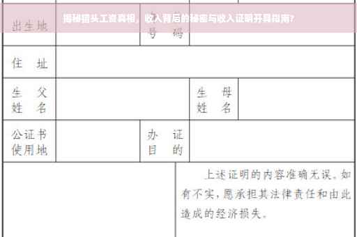 揭秘猎头工资收入真相,了解不为人知的细节。想知道如何获取真实的工资收入证明吗?本文将为你解析猎头的薪酬结构,包括底薪、项目提成和业绩奖金等。教你如何开具有效的工资收入证明,让你轻松掌握猎头的收入情况。文章内容丰富实用,助你更全面地了解猎头的薪酬真相。