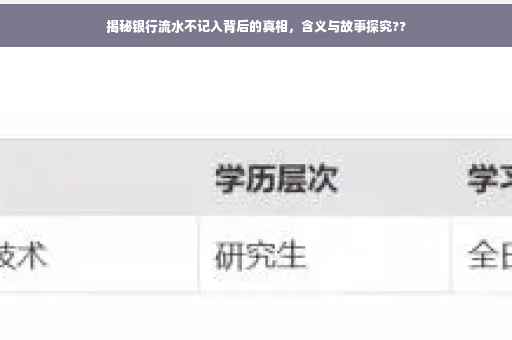 随着金融行业的迅猛进步,个人财务管理逐渐受到广泛关注,在这个过程中,银行流水作为财务记录的重要组成部分,其重要性日益凸显,部分人群反映他们的银行流水并未正常记录,究竟是什么原因导致了银行流水不记入呢?本文将带您深入了解银行流水不记入背后的真相。