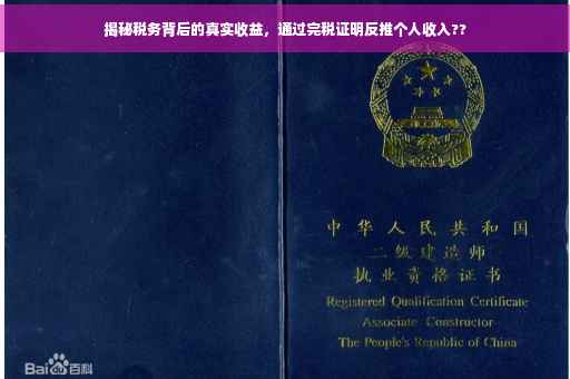 摘要:本文通过个人完税证明反推收入的方式,揭示了税务背后的真实收益。通过完税证明可以推算出个人的实际收入情况,进一步了解税务对个人收益的影响。这种方法有助于公众更加清晰地了解税务制度和个人的财务情况。