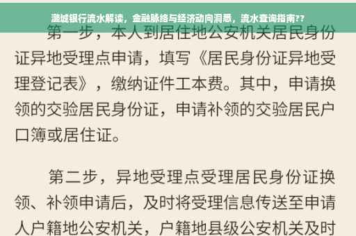 随着金融行业的迅猛进步,银行流水作为个人及企业经济活动的真实写照,已引起社会各界的广泛关注,潞城作为金融活动的重要区域,其银行流水的重要性尤为突出,本文将带您深入了解潞城银行流水的相关内容及其在金融领域的应用价值。