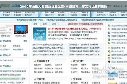 2000年函授大学毕业证怎么查?如果你是2000年函授大学的毕业证,你的毕业证上的学校,如果是国家正式的学校,并且那一次招收的函授生指标,是国家批准的招生指标,那么你就可以登录国家教育部组建的学信网,一定能查到你的毕业证编号。