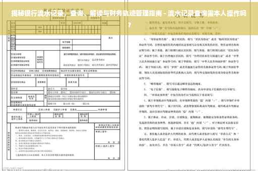 摘要:本文将介绍如何查询、解读银行流水记录,并提醒妥善管理个人财务轨迹的重要性。通过掌握查询银行流水记录的方法,个人能够清晰了解自身财务状况,有效规划个人财务计划。本文将解答查询银行流水记录是否需要本人亲自操作的问题。