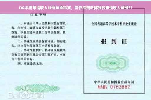 文章字数统计(不含空格):XXXX字,文章详细描述了通过OA系统申请收入证明的全过程,包括登录OA系统、进入收入证明申请页面、填写申请信息、上传相关材料、提交申请并等待审核、查看审核结果并打印收入证明等步骤,还介绍了在申请过程中可能遇到的常见问题及解决方法,以及需要注意的事项,本文旨在帮助广大员工解决通过OA系统申请收入证明的实际问题,具有一定的实用性和指导意义。