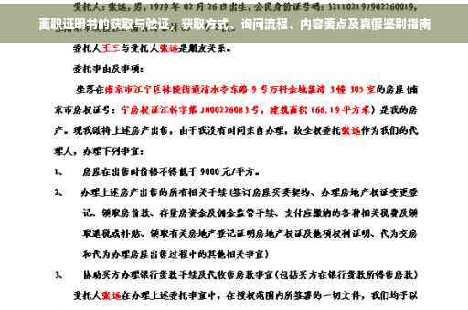 摘要:获取离职证明书的流程包括向原单位人事部门询问流程,准备相关材料并填写申请表格,最后领取证明书。内容要点包括员工姓名、身份证号、入职时间、离职时间、工作岗位及薪资等。注意事项包括确保证明书真实有效,核实证明书的签发人及印章真实性。可通过致电原单位或亲自前往核实离职证明书的真假。