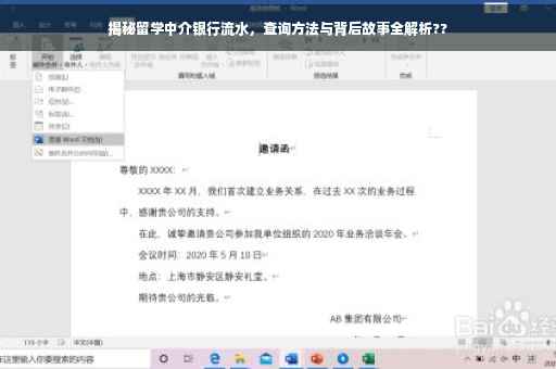 摘要:留学中介银行流水是留学生申请签证和留学过程中的重要环节,但背后隐藏着许多不为人知的故事。本文将揭示留学中介银行流水的重要性及其背后的细节,并介绍如何查询留学中介银行流水,帮助留学生更好地了解这一过程,避免不必要的麻烦和风险。