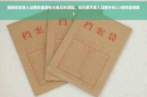 在当今社会,随着经济的不断发展和金融市场的繁荣,越来越多的人选择通过贷款来实现自己的各种需求,而在申请贷款的过程中,收入证明成为了至关重要的环节,银行和其他金融机构通过收入证明来评估申请人的还款能力,从而决定是否批准贷款申请,有时,一些机构会要求提供收入证明的2.2倍证明,这背后又隐藏着怎样的逻辑呢?本文将为您详细解析贷款收入证明的重要性,并探讨2.2倍证明的背后含义。
