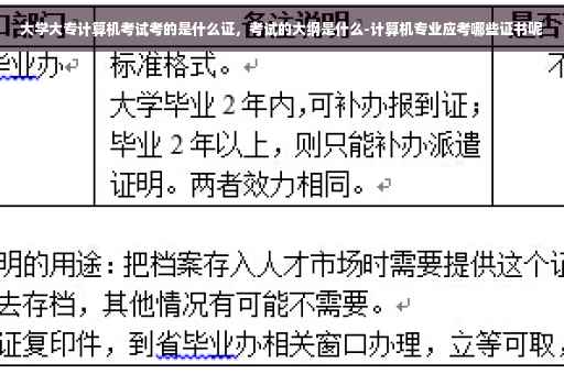 考试分为四个等级,不同等级的内容不同,一级主要考核微型计算机基础知识和使用办公软件及因特网(Internet)的基本技能。一级分为DOS版和Windows版,考核应试者计算机基本知识和使用微机系统的初步能力。考试科目有一级MS Office、一级WPS Office、一级Photoshop,一级共三个科目。一级WPS Office考试内容: (1) 选择题(计算机基础知识和网络的基本知识)。(2) Windows 操作系统的使用。(3) WPS 文字的操作。(4) WPS 表格的操作。(5) WPS 演示软件的操作。(6) 浏览器(IE)的简单使用和电子邮件收发。一级MS Office考试内容: (1) 选择题(计算机基础知识和网络的基本知识)。(2) Windows 操作系统的使用。(3) Word 操作。(4) Excel 操作。(5) PowerPoint 操作。(6) 浏览器(IE)的简单使用和电子邮件收发。一级Photoshop考试内容: (1)单项选择题 (含计算机基础知识部分,Photoshop 知识与操作部分)。(2)Photoshop 操作题(含3 道题目)。大学校园里最常见的计算机证书:全国计算机等级考试。这个证书简单的说,是非计算机专业学生必考的证书。这款证书共分为四个等级:一级、二级、三级、四级。一般的大学生考到二级、三级就差不多了。其中的最高级四级相当于全国软考的初级水平。总之,如果是针对计算机专业的学生来讲,此证书含金量不高。