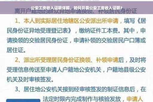 开具公安工资收入证明需要遵循以下步骤:提出申请、填写申请表格、单位审核、开具证明、证明交付。
