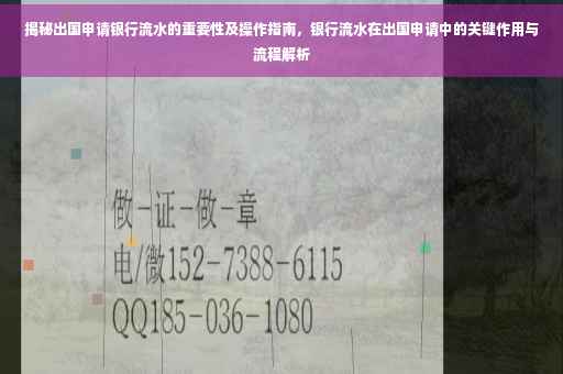摘要:,,本文将介绍出国申请银行流水的重要性,解释为何银行流水在出国过程中必不可少。提供详细的操作指南,帮助申请者正确准备和提交银行流水。通过本文,读者将了解银行流水在出国申请中的作用,以及如何有效展示个人财务状况,提高申请成功率。