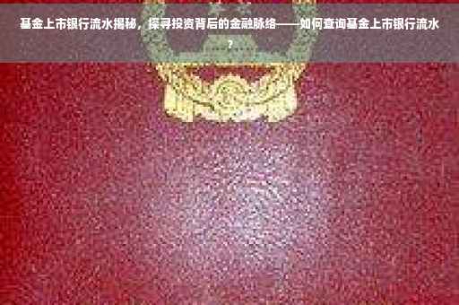 摘要:基金上市银行流水是揭示投资背后金融脉络的关键信息。投资者可通过网上银行、银行柜台或相关APP查询基金上市银行的流水记录,了解资金流向和交易明细。本文旨在介绍如何查询基金上市银行流水,帮助投资者更好地把握投资动向,确保资金安全。