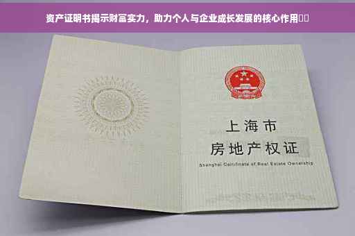 资产证明书在个人和企业发展中具有重要作用,它不仅是个人和企业经济实力的重要证明,也是个人信用评估、企业融资、商务合作等方面的重要依据,我们应当充分了解并善于利用资产证明书的作用,为个人和企业的成长发展提供有力支持,在办理资产证明书时,也需注意保护个人信息和资产安全,避免因操作不当而带来不必要的风险。