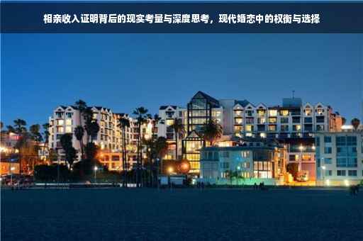 摘要:在现代婚恋中,收入证明成为了相亲的重要考量因素之一。这一现象引发了人们对现实婚恋观的深度思考。本文探讨了收入证明在相亲中的必要性,同时呼吁人们在追求物质条件的同时,不应忽视精神层面的交流与理解。相亲时,除了收入证明,双方还应注重性格、价值观、兴趣爱好等方面的匹配程度,以实现真正的情感共鸣和人生伴侣的选择。